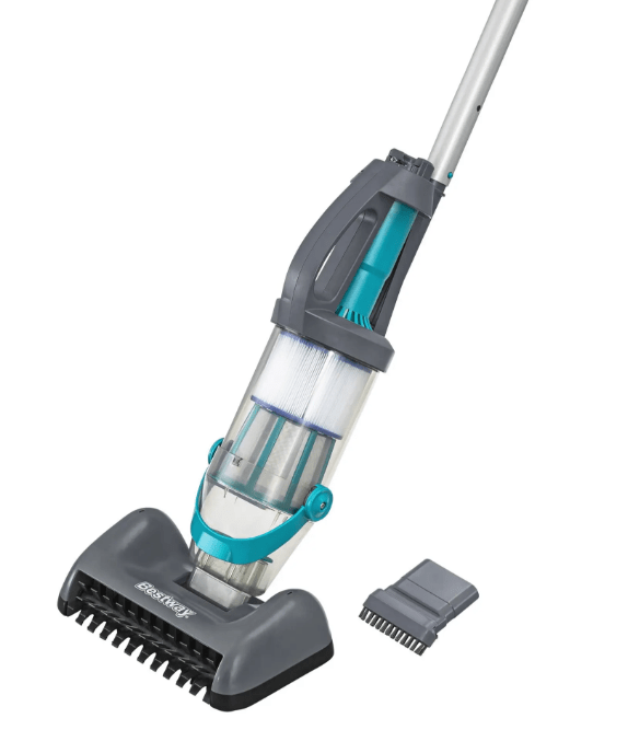 La manutenzione della piscina raggiunge nuovi standard di praticità e comfort grazie all'aspiratore ricaricabile AquaGrip, un dispositivo progettato per rendere la pulizia un'esperienza semplice e intuitiva. La vera forza di questo strumento risiede nella sua natura 2 in 1: può essere utilizzato agilmente a mano per rifinire gradini e pareti, oppure collegato all'asta inclusa per igienizzare il fondale e raggiungere anche gli angoli più nascosti.
